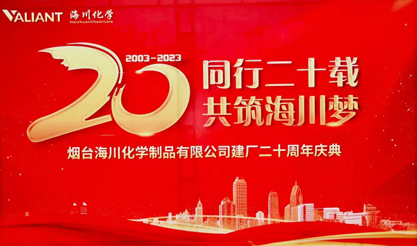 2023年6月10日,海川化學(xué)成立二十周年,海川公司先后組織全體員工開(kāi)展征文及書(shū)法繪畫(huà)作品征集、回顧二十載短視頻制作等活動(dòng)。6月10日上午,全體員工在廠區(qū)進(jìn)行集體合影留念,共同慶祝海川公司成立20周年。